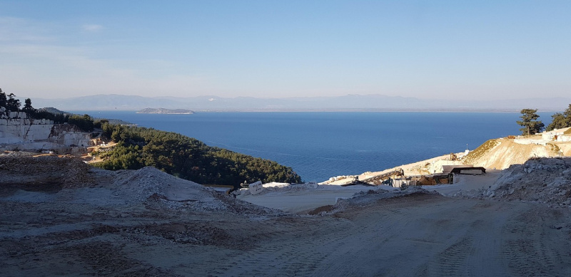 Druhou zaujímavosťou je, že sa tu už oddávna ťaží mramor. A to nie len tak hocijaký. Vďaka svojej čistote a snehovo bielej farbe bol cenený už v starovekom Grécku a Ríme. A belší mramor ako thassoský nebol objavený dodnes. Aj dnes môžeme navštíviť lomy, kde sa ťaží a tí majetnejší z nás si ho tu môžu objednať a potom sa doma tešiť z kúska autentického Thassosu.